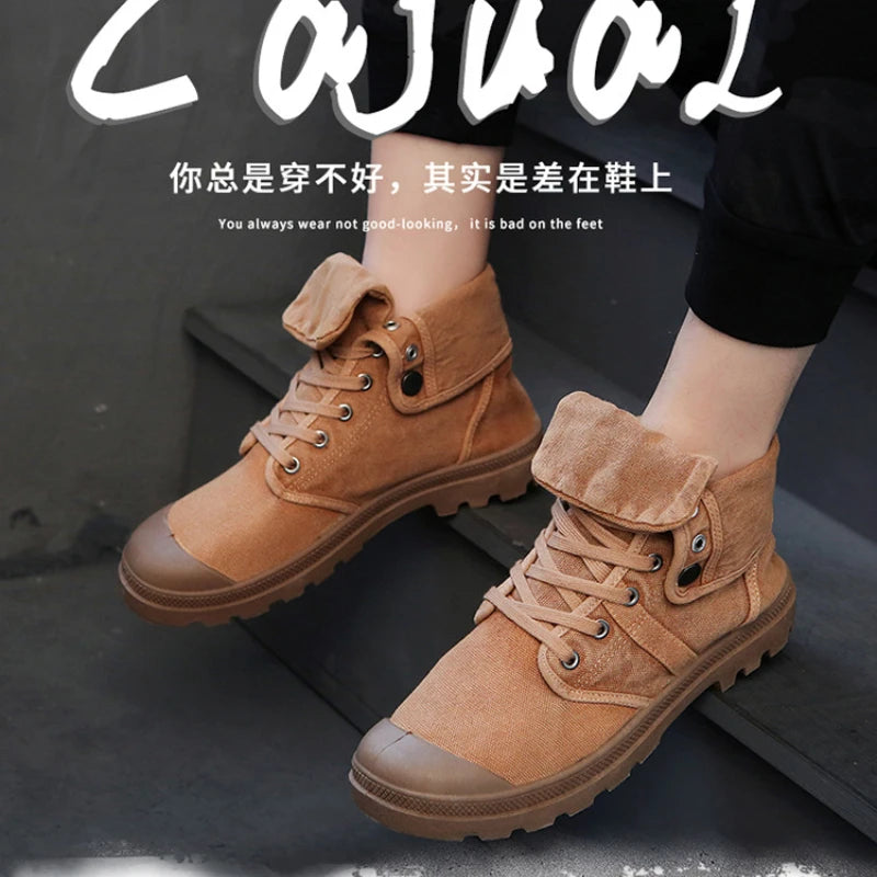 Ankle Boots for Men Sneakers Lace-up Outdoor Men Casual Shoes Flats Breathable Comfortable Canvas Shoes Male Zapatos Hombre
