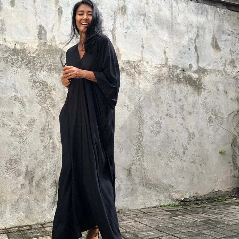 Back To Simple Maxi Dress Flowing Summer Long Kaftan Solid Color Red Batwing Caftan Tunic Minimalism Rayon Longewear Plus Free