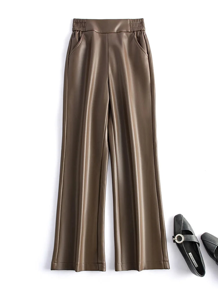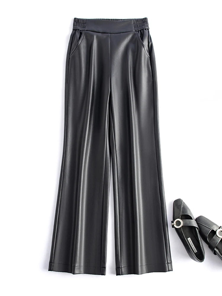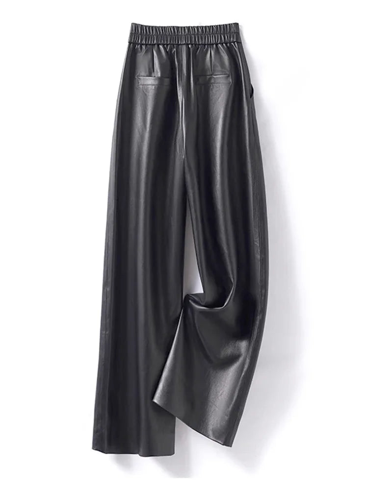Black Genuine Leather Pants Women Sheepskin Straight Pants Spring Autumn High Waist Belt Loose Real Leather Casual Trousers