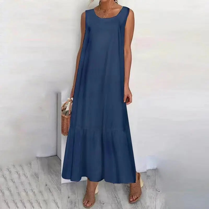 Casual Loose White Maxi Dresses For Women Summer 2024 Fashion Sleeveless Straped O Neck Long Dress Elegant Vestidos