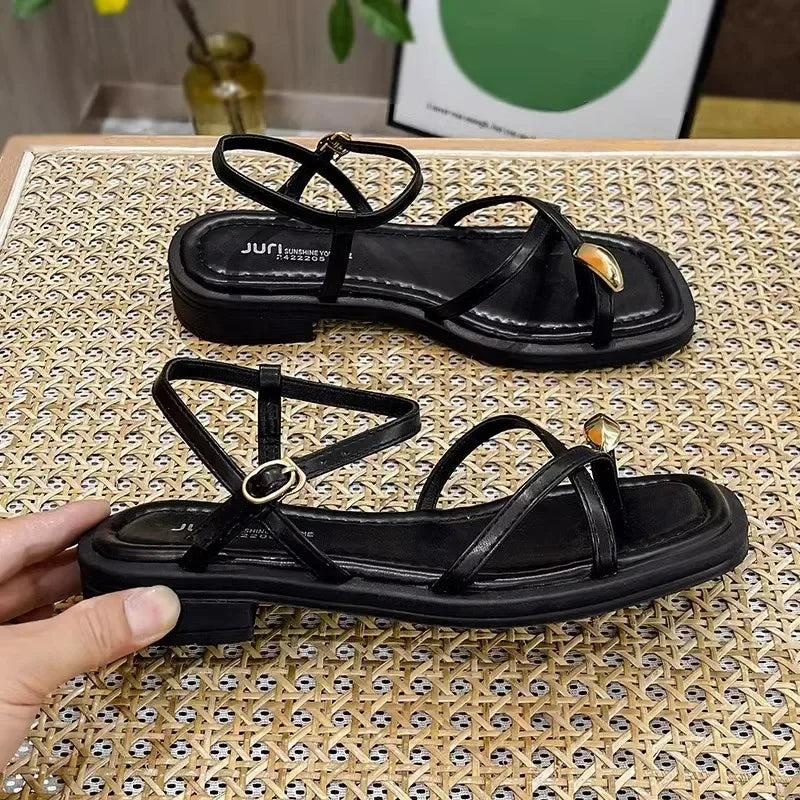 Heeled Sandals Shoes Women's Black Beach New Summer 2024 Girls Low Comfort Sports Casual Solid