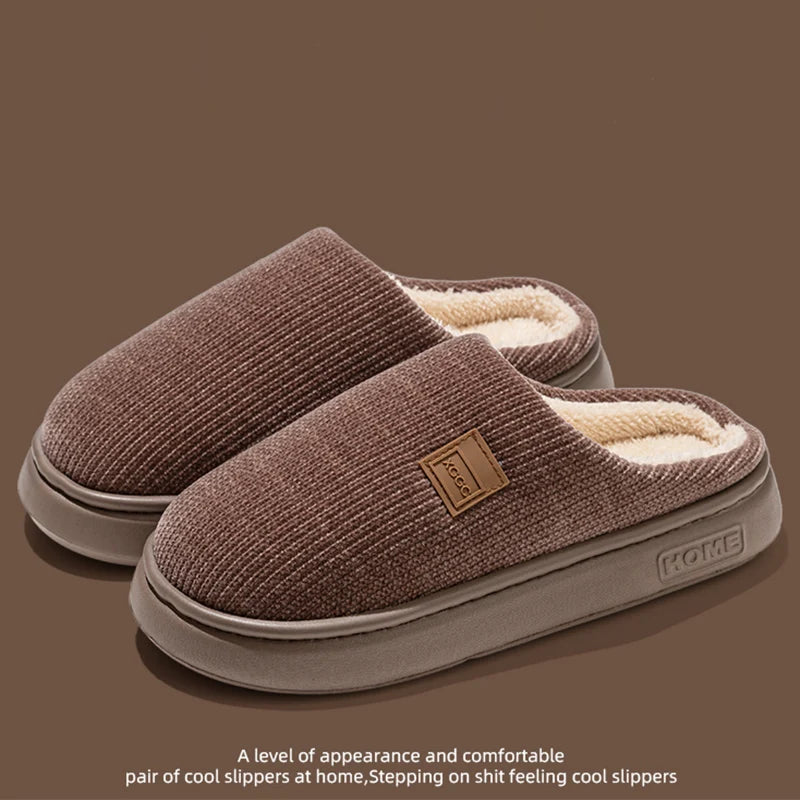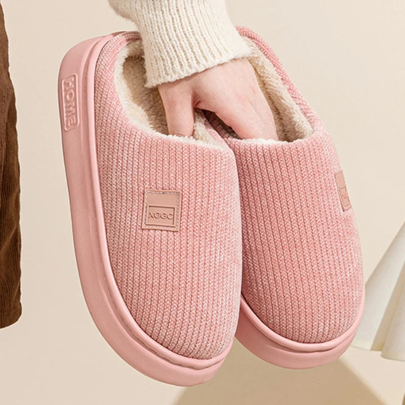 Indoor Soft Plush Slippers Women Corduroy Thick Bottom Non Slip Cotton Slippers Woman Light Round Toe Home Cotton Shoes Mujer