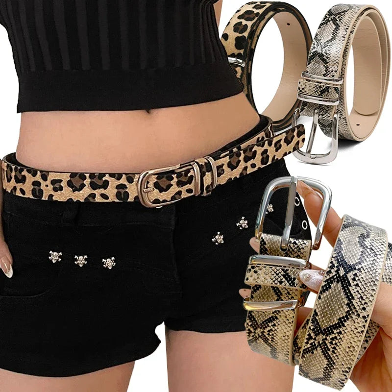 Y2K Leopard Print Belt Women Snake Skin Pattern Belts Jeans Reduce Waistline PU Waistband Skirt Pants Shrink Waist Leather Belt
